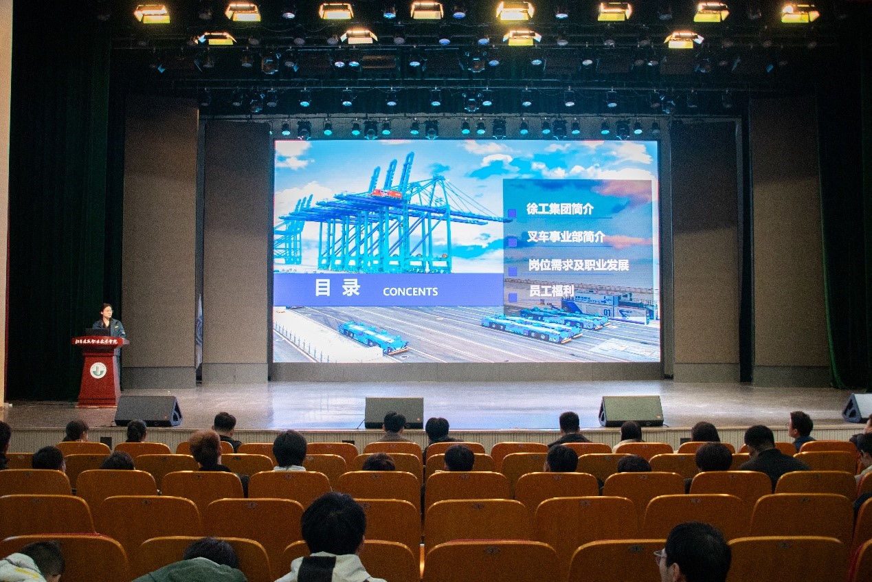 10月11日,徐州徐工港口机械有限公司、徐州徐工特种工程机械有限公司、徐州工程机械技师学院三家单位的联合宣讲会在学校会堂成功举办。本次活动吸引了我校众多大三学生参与。