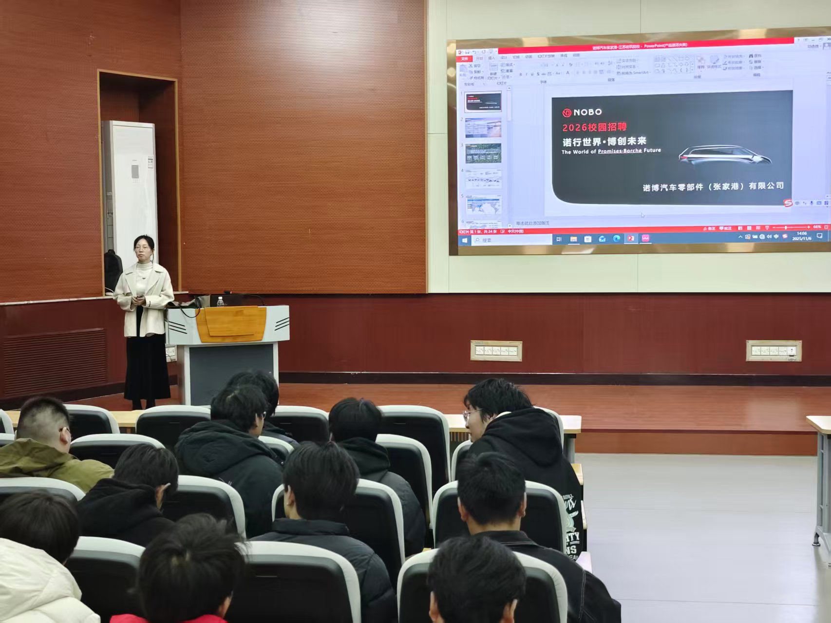 11月6日下午,诺博汽车零部件有限公司在我校招聘大厅举办专场招聘宣讲会。本次活动吸引了不少大三学生到场参与,活动期间学生们就岗位发展与企业招聘负责人深入交流。此次活动不仅有助于推动毕业生高质量就业,也深化了校企间的合作与联系。