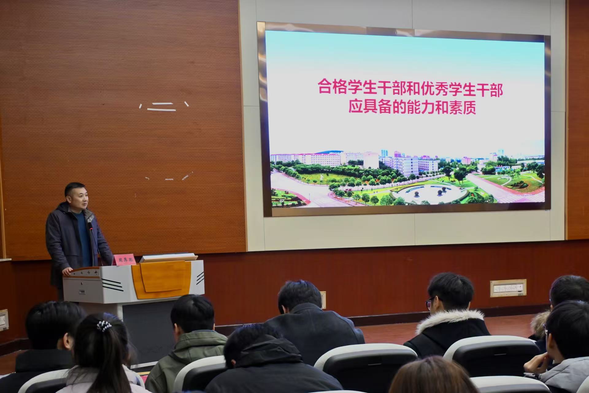 为进一步提升学生会干部的综合素质与工作能力,明确学生会干部的职责使命,充分发挥学生会干部在学院学风建设、日常管理及校园文化建设中的先锋模范作用,2025年12月9日,智能制造学院举办了一场学生会干部培训。学院党总支书记周厚思以“合格学生干部和优秀学生干部应具备的能力和素质”为主题,为全体学生会干部带来了一堂实用的培训课。