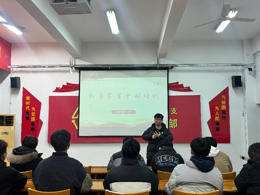 培训中,周宣宇结合自身丰富的学生工作经历,紧扣学生会干部岗位实际需求,从“职责定位、工作方法、沟通技巧、责任担当”四大核心维度展开深入讲解。他强调,学生干部既是学院各项工作的“执行者”,更是服务同学的“贴心人”,必须始终坚守“以身作则、严于律己”的准则,在学习生活中树立模范标杆;同时要主动下沉同学群体,倾听真实心声,把“为同学办实事”落到实处。针对学生干部普遍面临的“工作与学习平衡”难题,他分享了高效统筹时间、科学分配精力的实用方法,鼓励大家在服务同学的过程中提升组织协调、问题解决等综合能力,实现个人成长与集体发展同频共振。