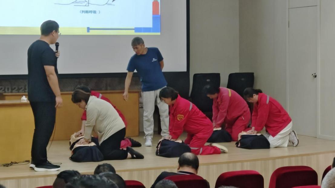 本次培训紧贴企业实际需求,涵盖工伤预防法规解读、高风险岗位安全操作规范、应急救援技能实操等模块。在应急技能教学中,心肺复苏、创伤急救等课程通过“理论讲解 + 模拟人实操 + 场景演练”形式开展。教师现场示范按压频率、部位等关键要点,指导沙钢员工分组实操,纠正动作偏差;还模拟工伤事故场景,让员工协作完成伤员转移、急救处置,强化应急处置能力。
