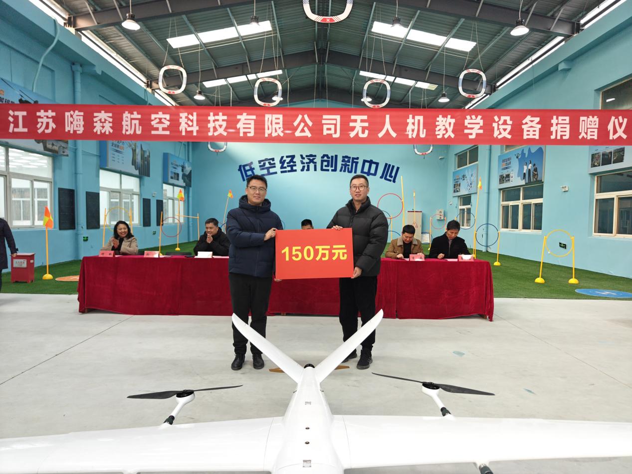 12月17日,江苏嗨森航空科技有限公司向我校捐赠价值150万元的无人机教学设备,党委委员、副校长蒋兆峰出席捐赠仪式,学校科技开发与对外合作处、教务处、智能制造学院等部门负责人及教师代表、学生代表参加活动。