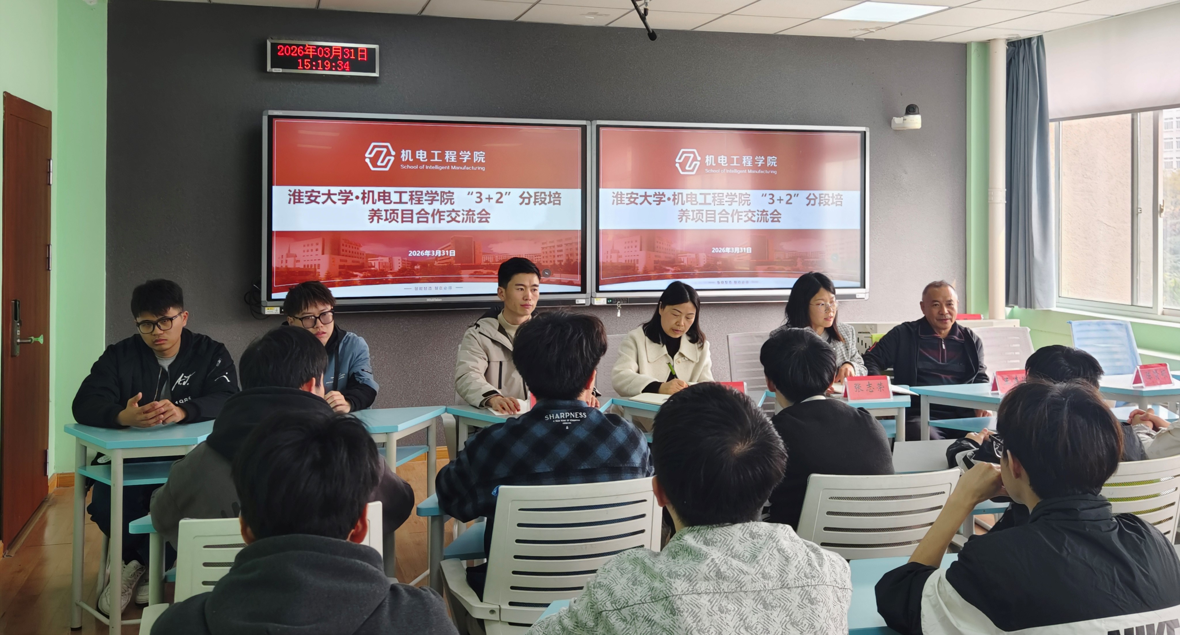 为推进“3+2”分段培养项目深入开展,深化校际协同育人,3月31日,淮安大学机械与材料工程学院副书记王明霞、辅导员王全国来我院开展分段培养项目合作交流会。我院党总支副书记张志荣、班主任王连洪、辅导员陈贤硕及全体过控25-1班学生参加交流。