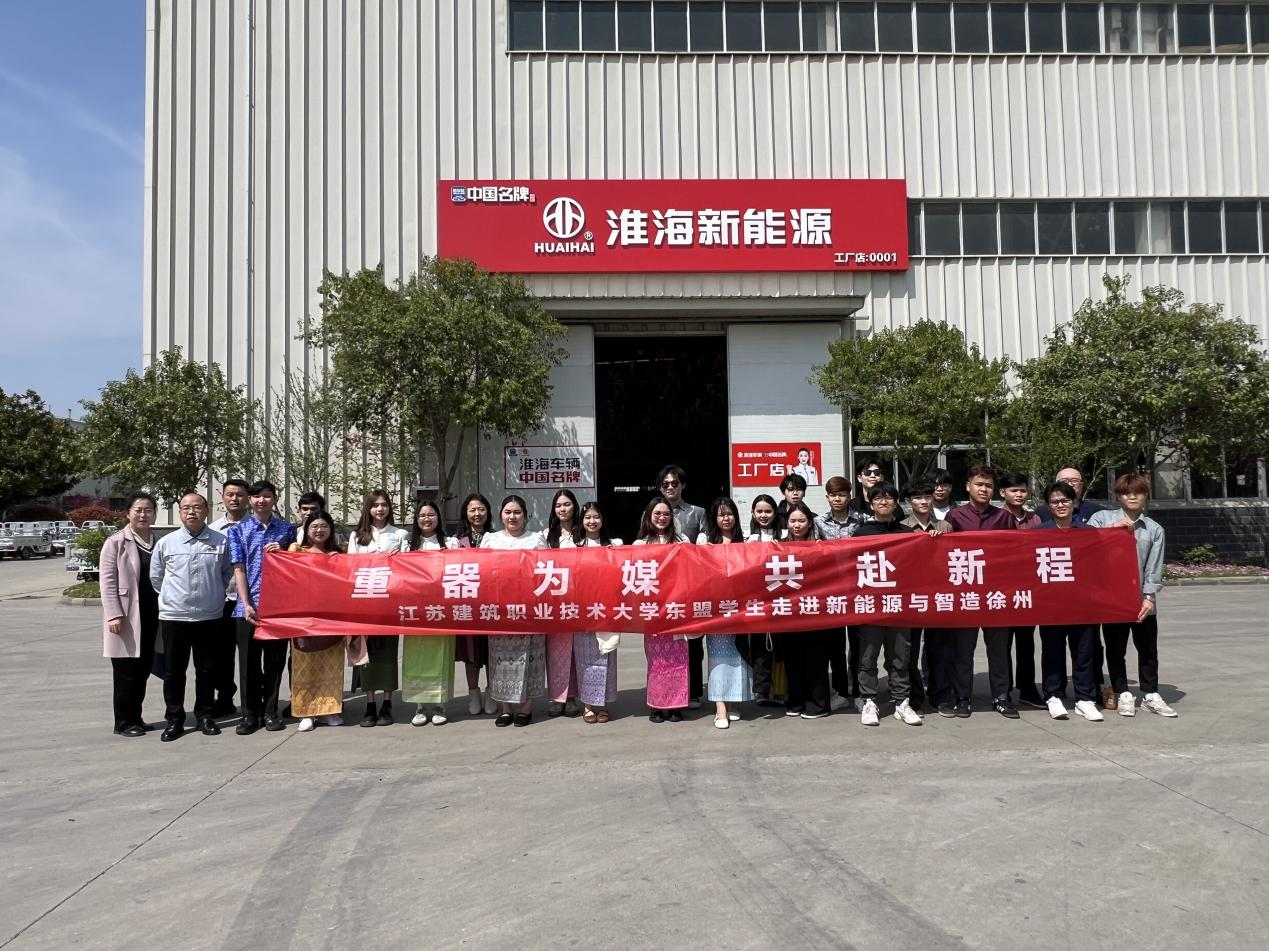 团队先后走访了江苏淮海新能源车辆有限公司、徐州徐工特种工程机械有限公司、徐州徐工港口机械有限公司开展等三家企业,均为徐州新能源与高端装备制造领域的标杆企业,业务涵盖新能源车辆、特种机械、港口装备等,与留学生们所学专业高度契合。在企业工作人员的引导下,留学生们参观了生产车间与各类新能源装备,近距离观察产品生产流程和核心技术应用,真切感受中国新能源装备制造业的发展实力。留学生们全程热情高涨,主动结合专业知识向工作人员提问交流,深入了解技术应用细节,近距离感受中国高端制造的硬核实力,在实践中深化了对专业知识的理解,也真切体会到中国制造业的发展活力与文化魅力。